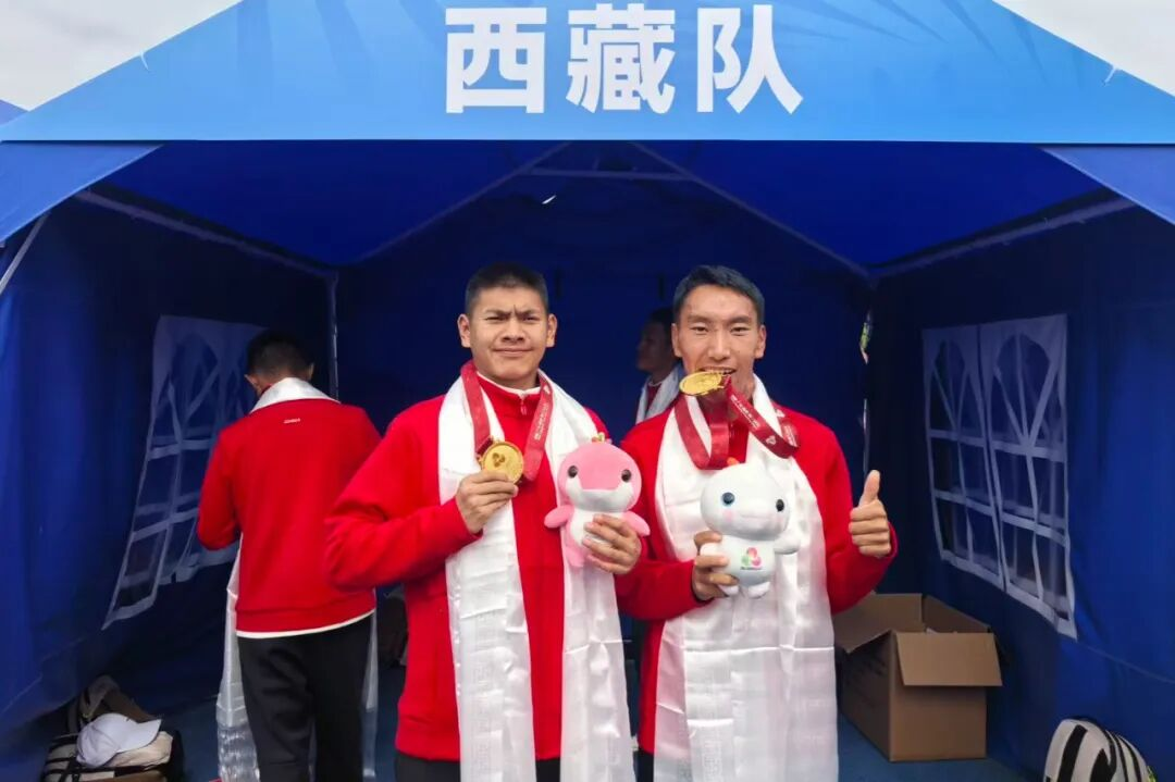 足球赛场捷报频传,布穷(右一)与洛松罗布(左一)携手发力,为昌都队男子足球金牌